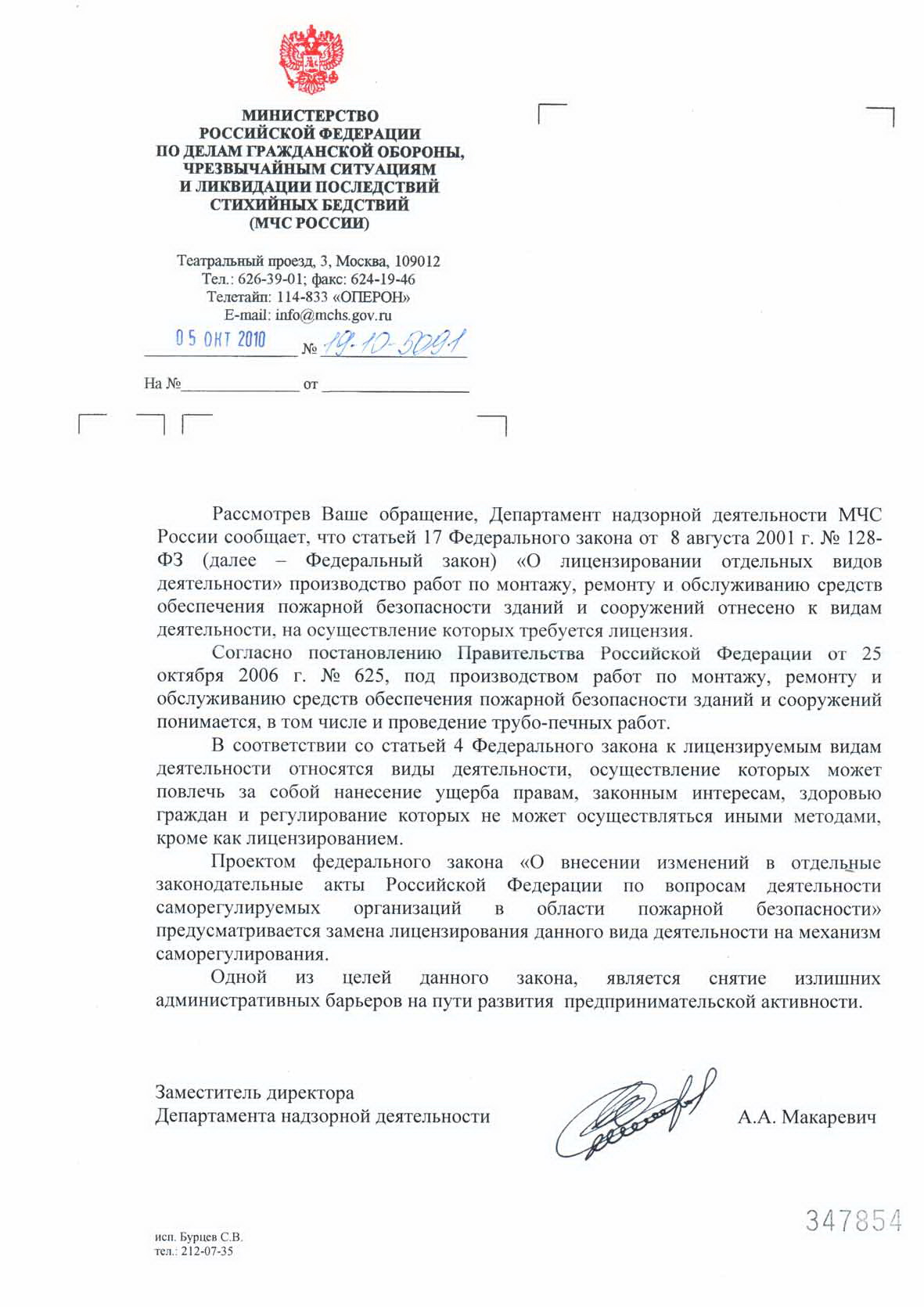письмо МЧС от 11.03.10