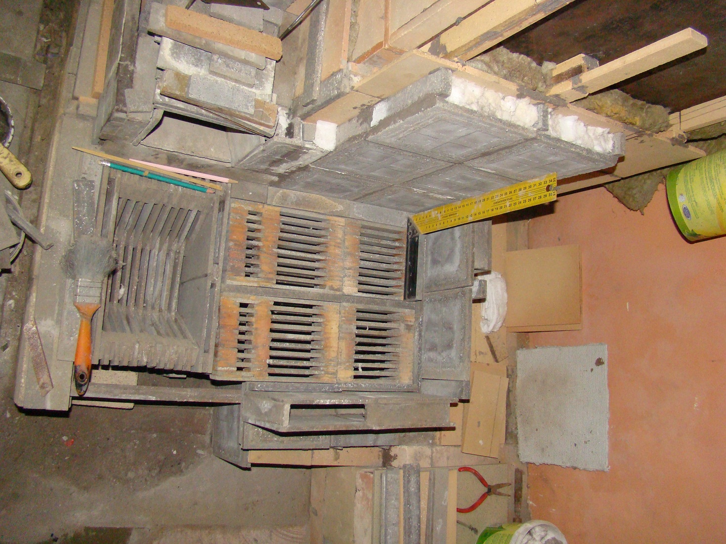 В силу того, что много прямых, квалифицированных рук отправилось на ПМЖ в сторону, противоположную сданного в металлолом станочного заводского парка, некоторые вещи пришлось упрощать, а попутно перекраивать конструкцию с целью повышения ее живучести. Таким образом пришлось делать теплообменник не с нержавейки, а из простой чернушки неизвестной марки, да еще в самом простом жаротрубном варианте. Вот с него все и началось. Фундамент сделан из обычного красного кирпича, который уложен в котлован, вырезанный в весьма плотном суглинке, поверх кирпича уложена огнеупорная керамическая плитка, на которую в качестве опорного элемента установлен шамотный кирпич в количестве 10 юнитов. На кирпич установлен 45 уголок на котором ТО и упокоется. Внутренняя полость соединяется с газо (дымо) ходом, соединяющим выхлоп котла с основной дым трубой. Дабы дальше не описывать материалы, сразу скажу, что из металла только дверца котла и подвеска свода, все остальное выполнено из керамики. Ну еще в теплоизоляции фольга алюминиевая присутствует....