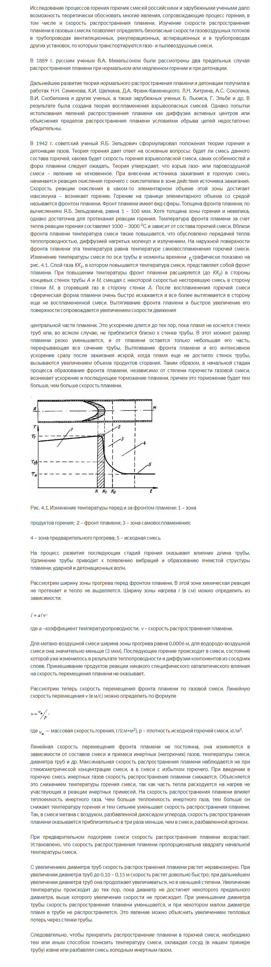 Следовательно, чтобы прекратить распространение пламени в горючей смеси, необходимо тем или иным способом понизить температуру смеси, охлаждая сосуд (в нашем примере трубу) извне или разбавляя смесь холодным инертным газом.