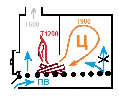 Перерисовываем схему Васильева (при холодной каменке) условно в виде стальной буржуйки.