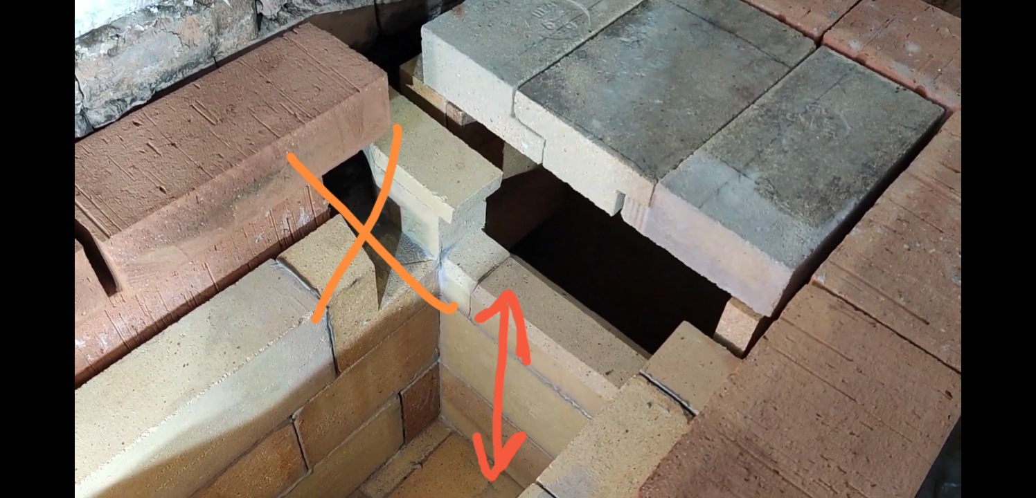 Место входа в хайло , будет сделано шамотом вторым слоем, три кирпича сбоку будет убираться, чтобы было за что зацепить шамот, если вы об этом, пожалуйста пишите более понятным языком, я не печник, всей терминологии не знаю