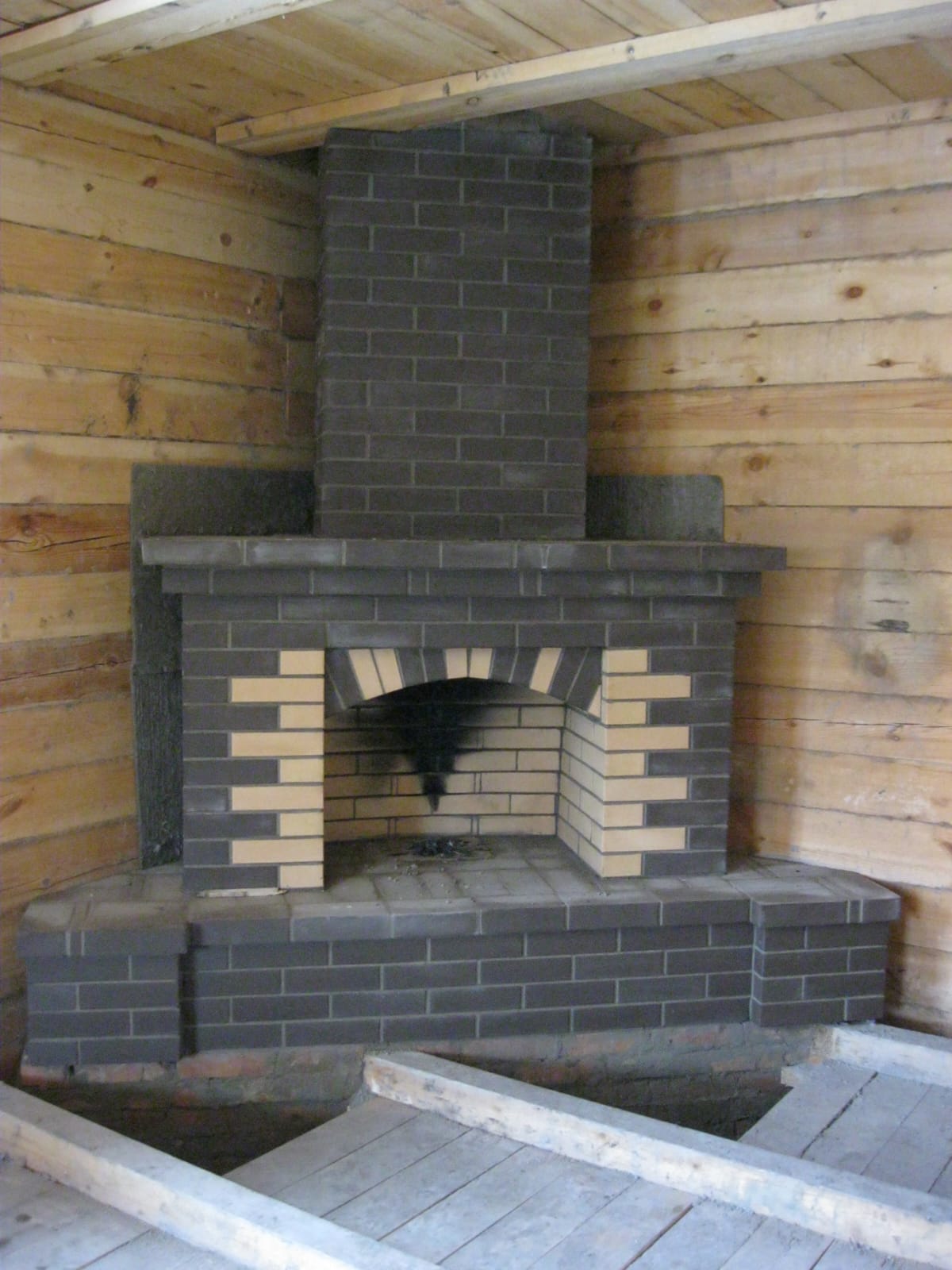 Имеем: дачный дом (без ПМЖ) из бруса, обшитого внутри деревом, снаружи - сайдингом без утепления, в 2 этажа (2-й этаж - мансарда), 1 этаж - единое, открытое пространство ~47м2, 118 м3, 2-й 2 комнаты примерно по ~30м3 каждая, шамотный кирпич от неправильно когда-то сложенного камина и фундамент от него же (обозначен в углу на плане дома. размеры приложил в отдельном файле. что угол фундамента острый, не уверен, поэтому отметил его красным).