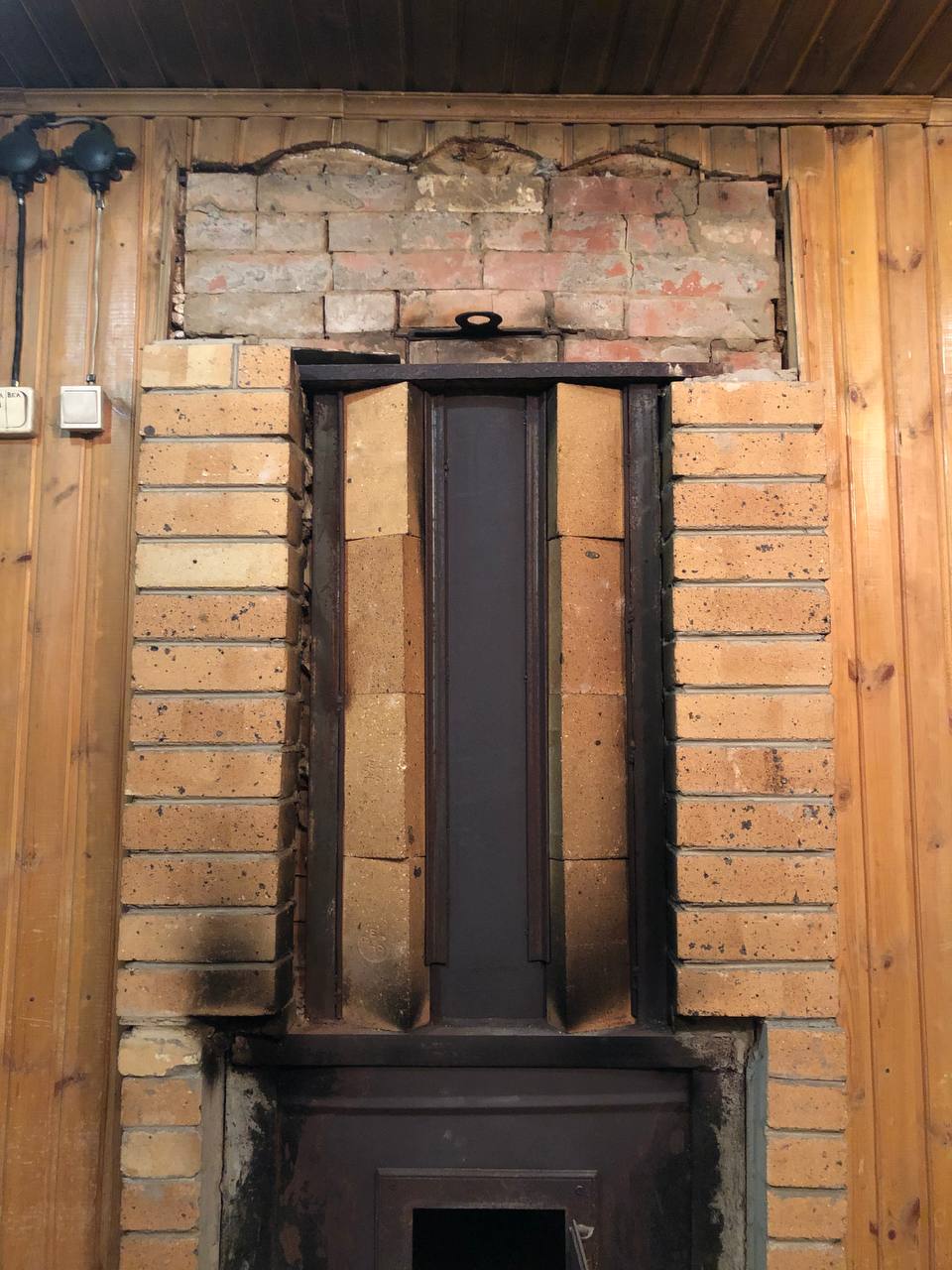 Частично разобрал. С права и с торца был один ряд кирпичей и листы железные, прогорели. Слева два ряда кирпичей с прослойкой в 1 см из какого то листа. Снизу тоже два ряда. Вопрос к знающим, разбирать верх где вьюшка? Вроде там просто труба вварена, что наверх идет. И что можно сделать следующим шагом?