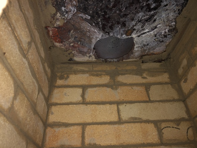 Где начала дымить? И где прогорело ("был один ряд кирпичей и листы железные, прогорели")?