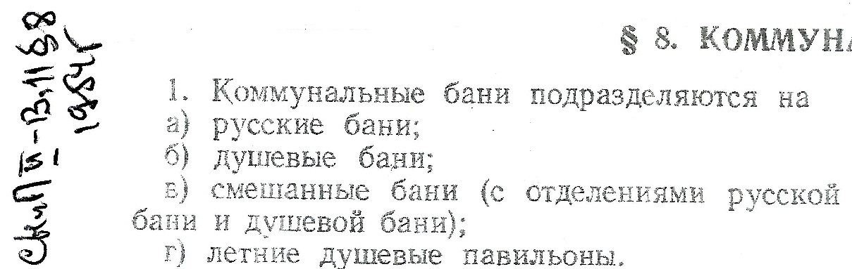 А в "Методических рекомендациях по проектированию бань и банно-оздоровительных комплексов" (утв. Приказом Роскоммунхоза от 30.12.1993 N 88) классификация такая:
