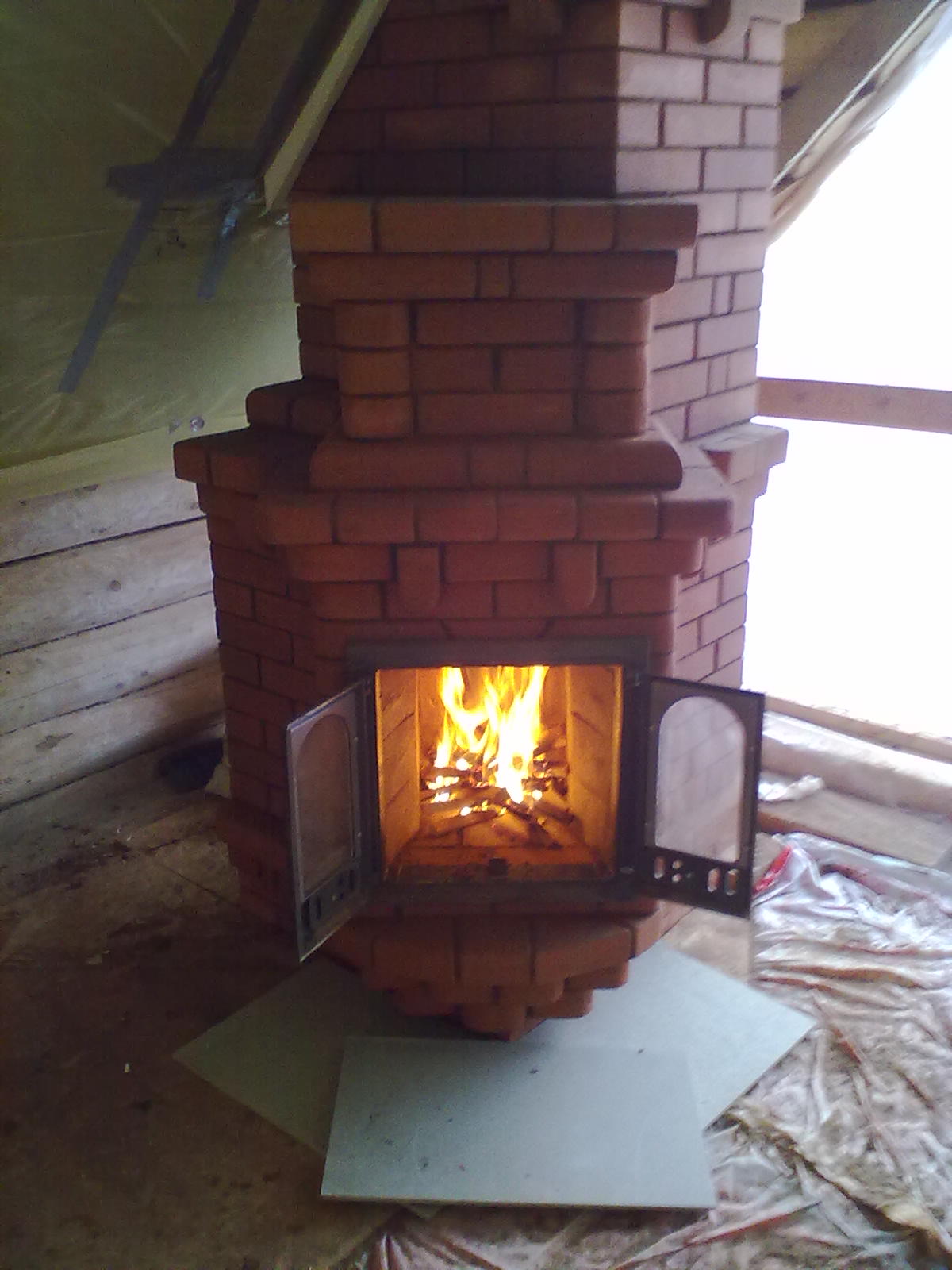 А Зачем так высоко поднят камин.? Можно было и нормальный камин разместить. А газовый порог можно делать плавным смещением трубы в сторону и не обязательно заднюю стенку камина с наклоном делать. Дымосборник главное правильно собрать.