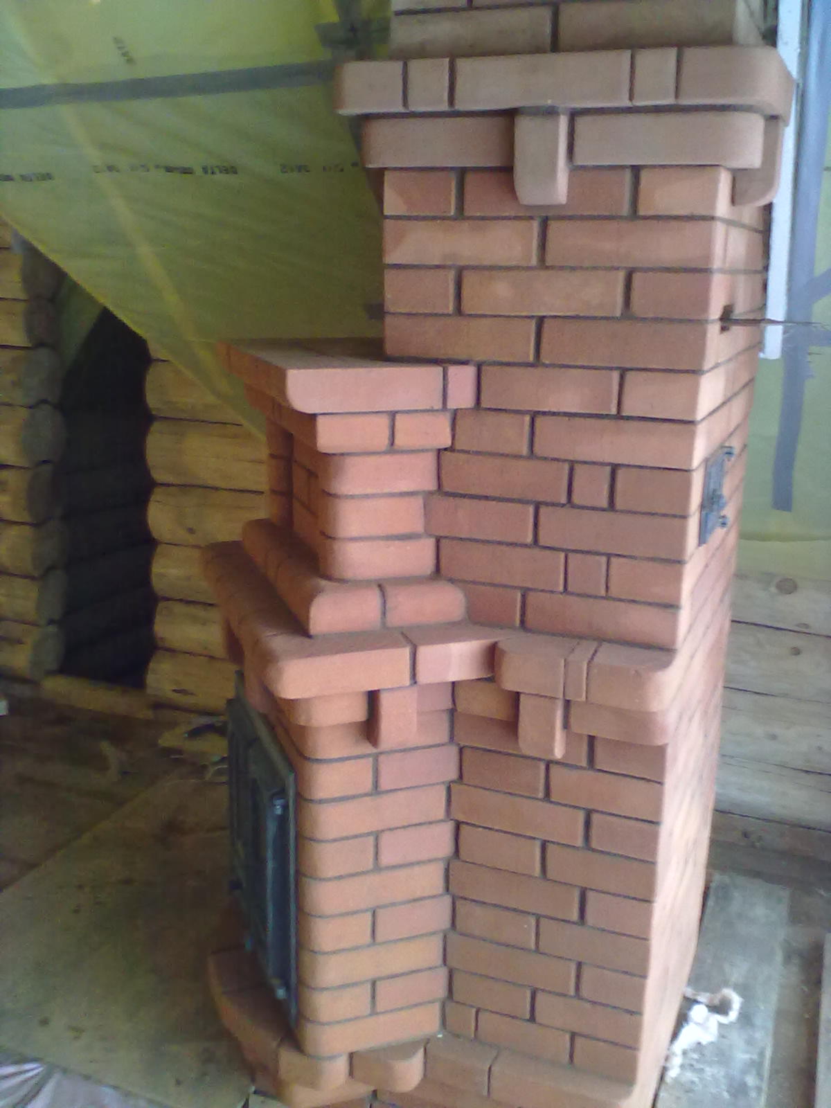 Небольшой угловой фундамент и размещение потолочных балок не дали выполнить камин по привычной схеме, поэтому на Ваш суд вот такой камин |