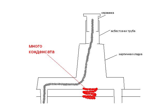 Некоторые печи страдают одним дефектом — они конденсируют, то есть выделяют черную жидкость со специфическим запахом, которая образуется в результате выпадения водяных паров и паров смолистых веществ на стенках дымовой трубы. Со временем конденсат пропитывает печную кладку насквозь, она становится сырой, тяга снижается, а кладка быстро разрушается. Пятна с наружной стороны печи удаляются только путем срубания кирпича и оштукатуривания таких мест цементным раствором, а чаще всего кладку заменяют новой. Выделяемые конденсатом тяжелые запахи приводят к невозможности проживания в доме. Даже в самом сухом топливе имеется небольшое количество влаги. Кроме того, при сгорании топлива также образуется водяной пар.