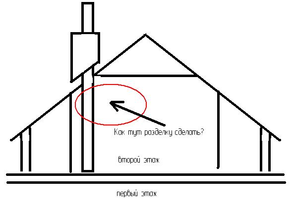 Вот вышел в чердачное помещение, а там труба попала частично в наклонный потолок, частично - в прямой. Как разделку сделать?