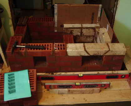 На фотографии перемычка над поддувальной дверцей. Кирпичь - трапеция уложен на глиняный раствор. Аналогично - над топочной дверцей. Щели засыпал карьерным песком (камешки до 5 мм).