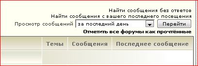 Можно ли добавить кнопку - посмотреть сообщения за последний деньнеделюмесяц. Иногда я не пользуюсь инетом неск месяцев. Потом тем с новыми ответами оч. много, зараз не прочтешь. При следующем заходе они не показываются.