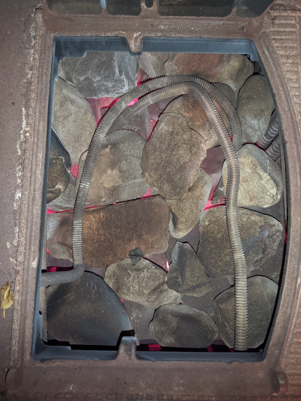 Скачал таки программу для сжатия. 1045 это через час от спички. Фото камней на момент закрытия задвижки, 2 часа 10 минут от спички. Нагрев соответсвенно нижний. Обратите внимание на отсутсвие сажи. Вес ящика с чугунном и камнями 290-300 кг, ещё 30 кг ряд шамота под ним, так же печь греет 140 литров воды в баке. Вроде цифры скорости выхода на пик горения повеселее чем у Захарыча, размер закладки в расчёт не беру потому что там вдвое больше дров уходит за баню даже больше с предварительным подтопом. Плюс моё решение без железных труб в камеру сгорания, неубиваемая конструкция. Послезавтра 26 кг буду топить так как от 30 в прошлый раз сильный перебор был. У меня так на ряд выше чем у автора, но можно было смело 12 рядов для ещё большего ящика делать. Но и этого с большим запасом хватает.