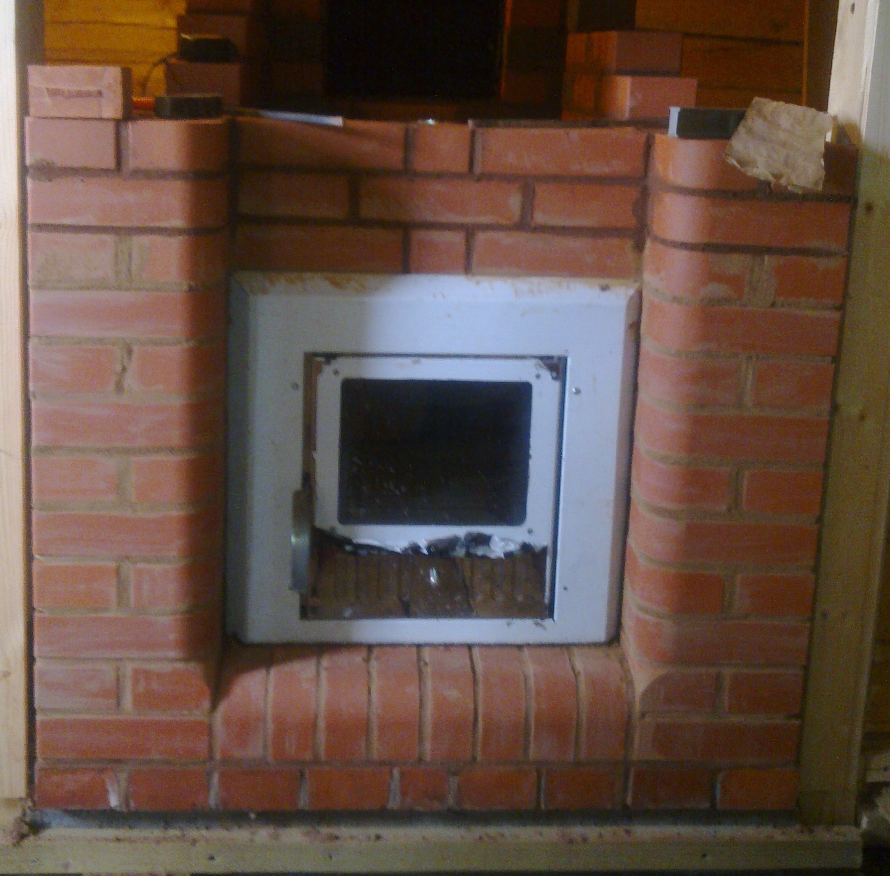 Чугунная печь Калита, обложенная в пол кирпича