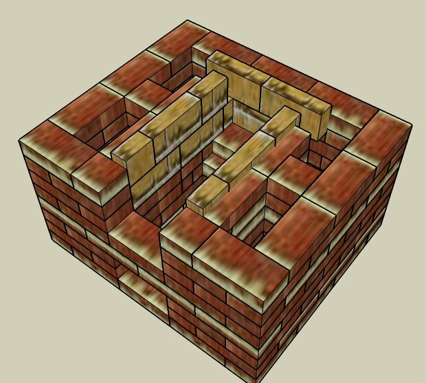 Уважаемые печники, на сайте стовве.ру в разделе Каталоги БИК П2 нарисована с каменкой со стороны противоположной топке, а в схемах порядовок топка находится сбоку. Я тут переделал. Мне надо чтобы каменка была с противоположной стороны от топки. Посмотрите, пожалуйста, какие у меня тут ошибки. Рисовал все в СкетчАпе.
