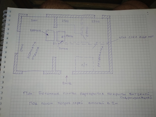 Так вот: идея в том, чтобы сложить печь для настоящей русской бани (60/60), которая будет топиться и в зимнее время, прогревая всё здание. Со стороны КО наверное лучше поставить камин, всё таки он даёт быстрое тепло. бак для подогрева воды литров на 100.