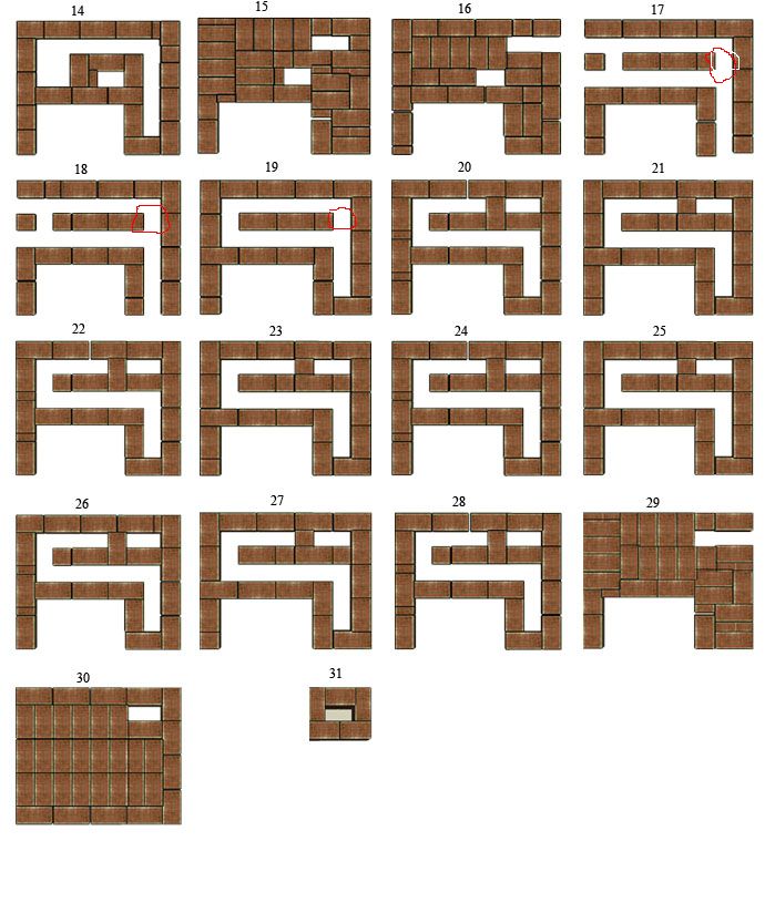 После анализа работы печи и порядовок пришел к выводу что стоит закрыть отверстие ( проем) указанный на порядовке в 17-19 рядах Собираюсь на выходных вскрыть печь и попробовать.