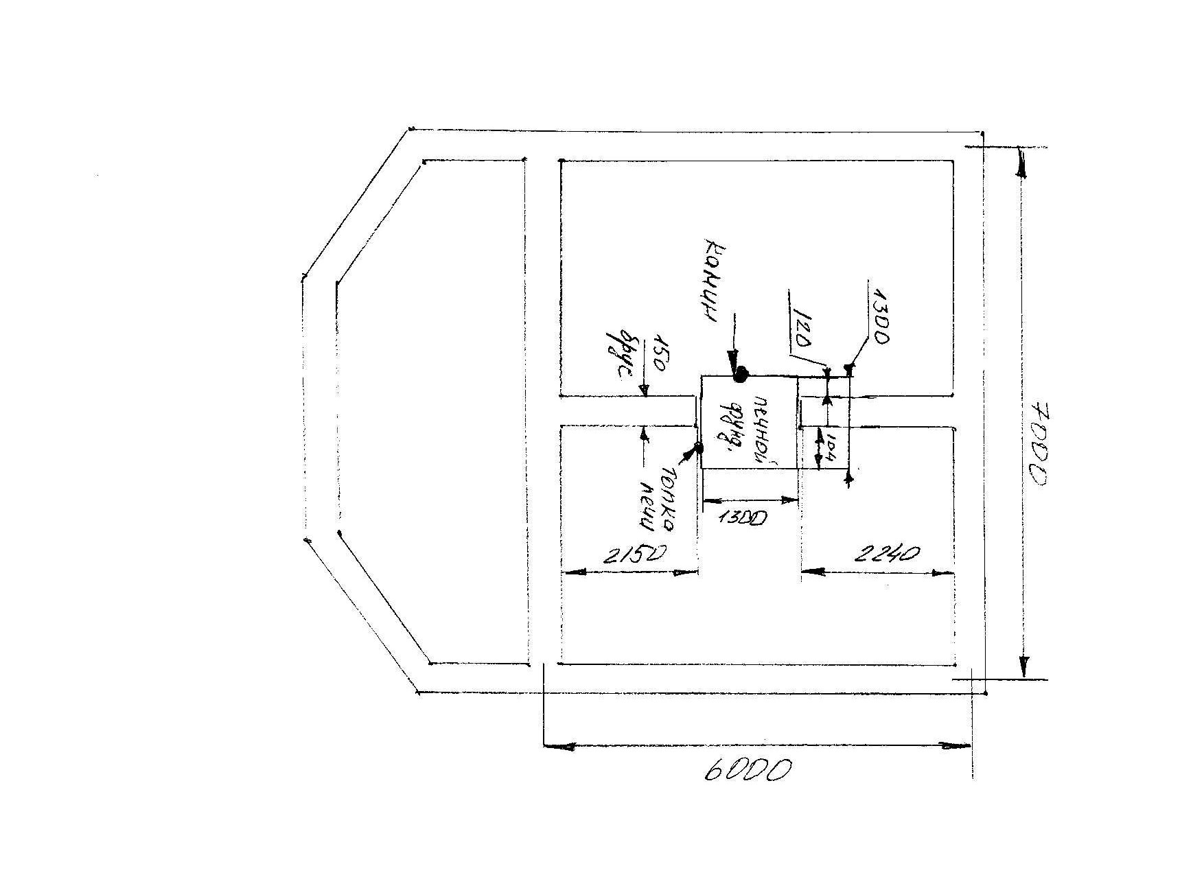 План-схему прилагаю. Фундамент под печь имеется, с основной лентой не завязан, размеры 130*130 см, высота 80 см.