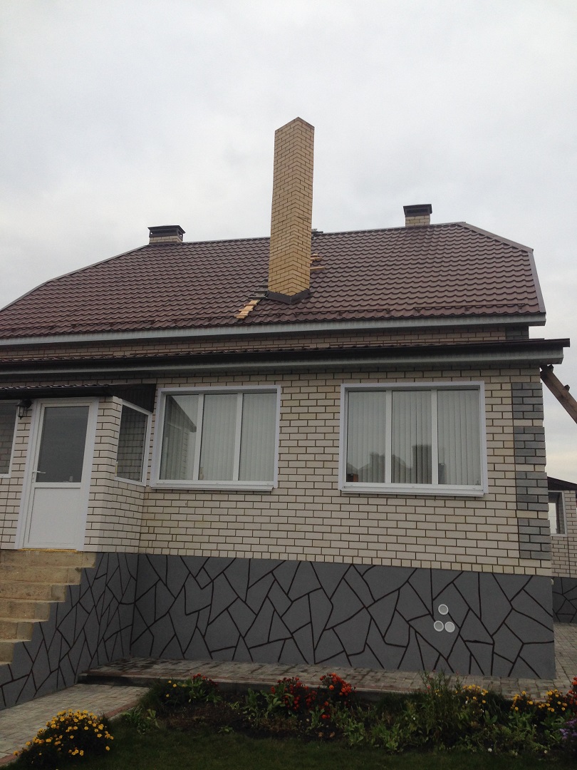 Явно дилетант лепил камин. Трубу не смог сообразить как развернуть. Так под углом к кровле так и проходит -маразм полный.