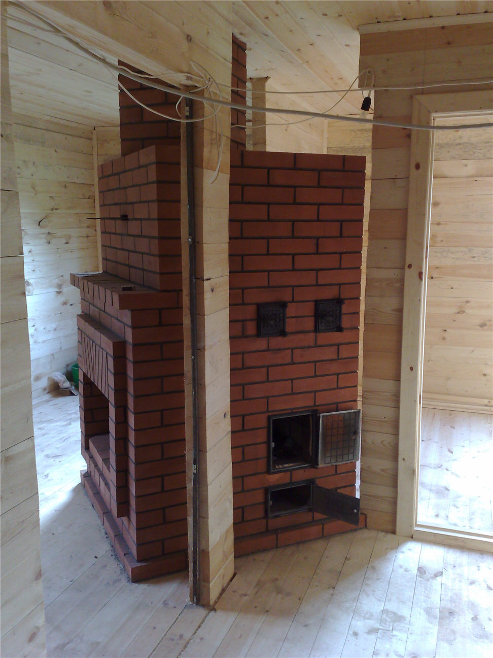 - чтобы топить можно было из коридора (туда выходила цельная стенка печи), и там же расположить всякие трубы, насосы