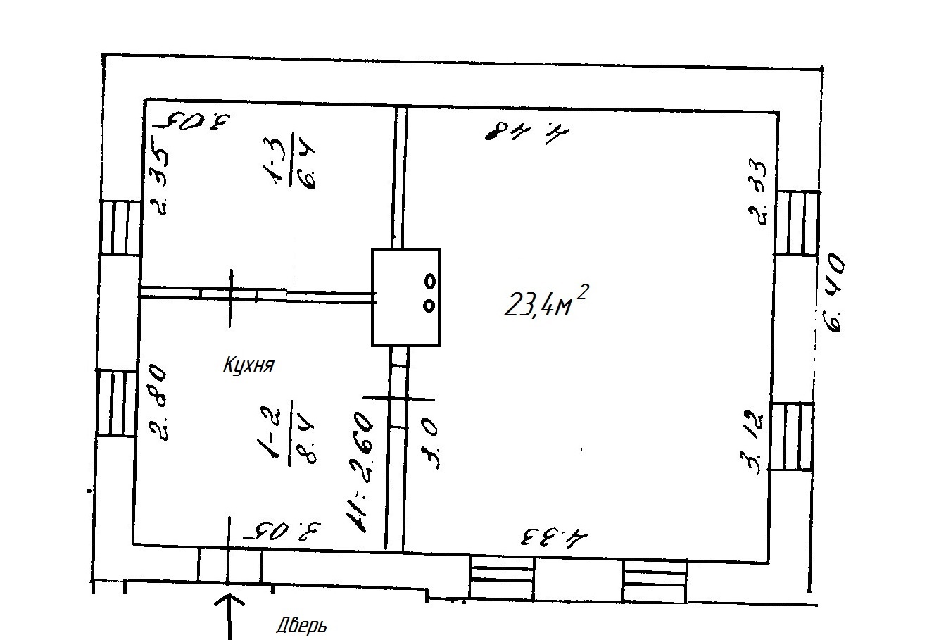 Добрый день Уважаемые форумчане. Нужна помощь в выборе отопительно-варочной печи для дома. Дом 6,40х 8м. Три комнаты. Стены литой саман, сантиметров 50, обложен в пол кирпича. Нужно перенести плиту в кухню, и отопить 3 комнаты. Та печь что есть , обогревает в весенне -осенний период. но вопрос стоит сложнее. отопить в зиму. Максимальный морозы зимой до -30. в основном держатся -15 -20. Планировка во вложении.