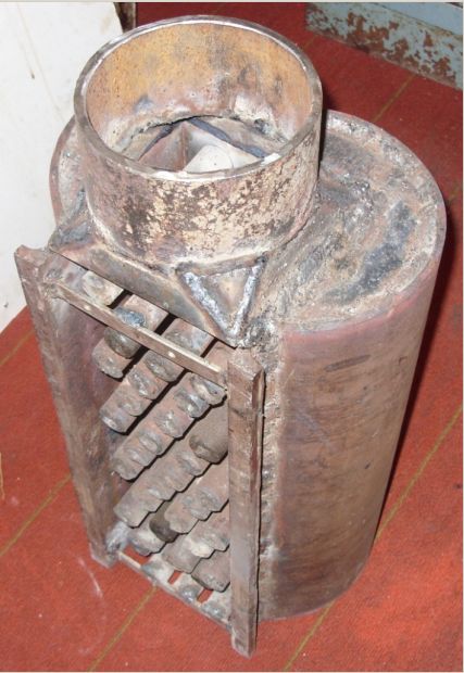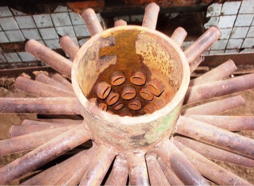 | Регистр с разветвленной поверхностью нагрева поднят из печи для обслуживания (котел пеллетный) |