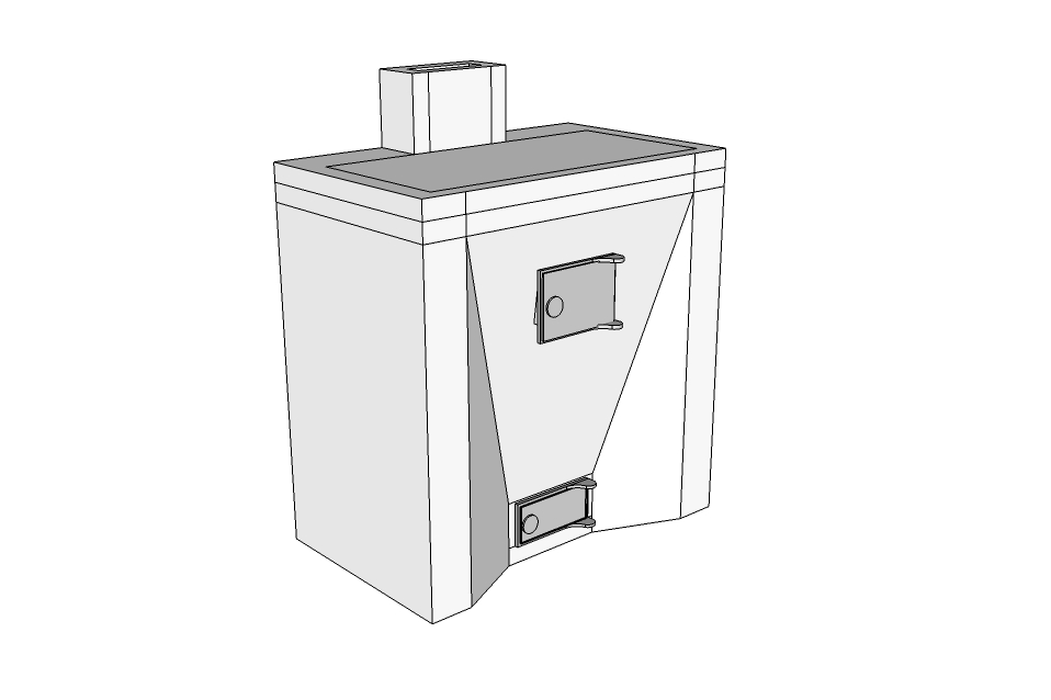 Да, я понял. Но это действительно хорошая задачка для печника. Вроде как в физике решить задачку. Я несколько вариантов на бумаге набросал и только потом в скетчап полез, потому как на бумаге не могу объем изобразить. А с программой пока туго. Не все получается, слои толком не могу сделать. Буду в выходные ковырять, может до ума доведу.