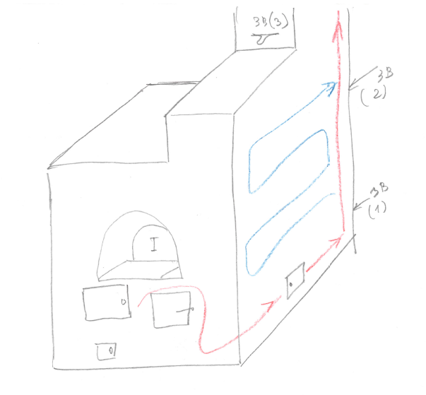 Есть вот такая РП с подтопком. Деревенская постройка, плита низенькая, из топки два хайла. Направо через духовку повидимому ЛХ. Интересует как идут ДГ из хайла, ведущего под горнило. Верх чисто РП, с отдельным дымоходом.