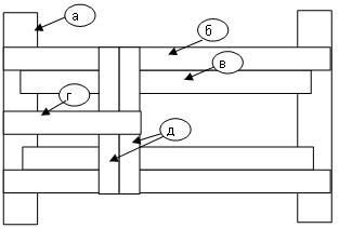 А - стена. Б - основная лага. В - дополнительная лага. Д поперечная опора. Г - обрезаная лага.