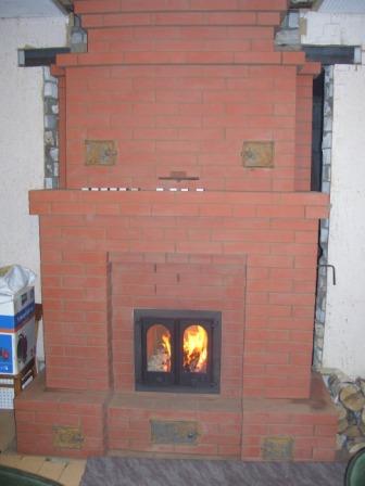 поставиь печь-куда,конечно лучше ближе к краю комнаты возле капитпльной стены. А можно и вырезать в стене и отопить сзади спальню.Та же печь только внешне сделана под камин. Размер 115/80см