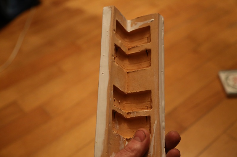 На банный портал приклеил два изразца или их имитацию на Теракот термо клей запелив в руной формовке паз под 2.5 см ставил без проволки .