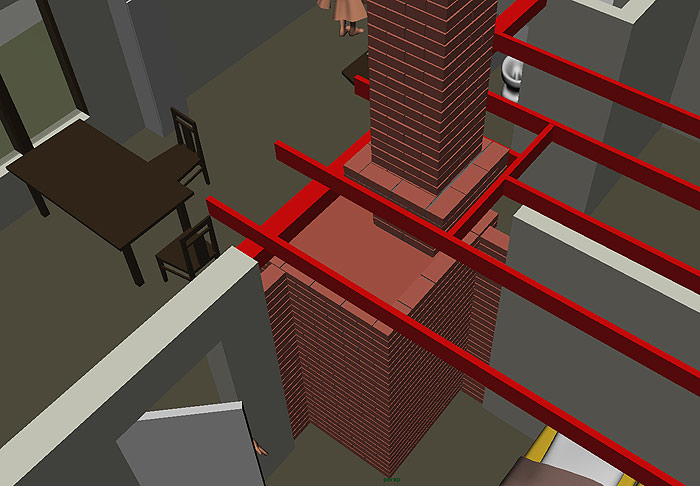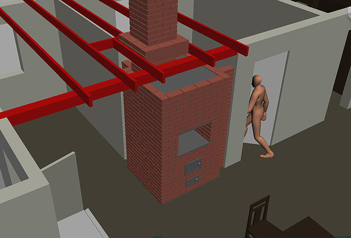 на эскизе - не печь - "рыба", только для визуализации возможных габаритов печи (120 х 120 см) и показать желаемое место выхода трубы относительно балки и потолочного бруса - вырыв красным цветом. |
