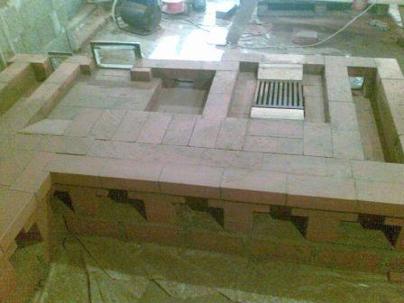 Шанцы: 1. прогревают воздух от пола - 4-й ряд 60градС; 2. повышают КПД - не греют пол (плиты бетонные+стяжка гидроизолированная 130мм до уровня чистого пола); 3. "облегчают", визуально, кладку кирпичную, декоративный элемент; 4. скрывают (в 3-м ряду) канал подсоса воздуха на горение - исключает неполное сгорание дров и, как следствие, СО в трубу и в помещение не попадает...