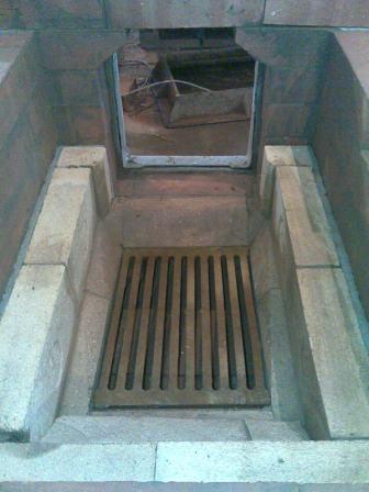 - вправо - на решётке ливневой канализации партия камней "по-чёрному" фракция 100-160мм прим. 100-140 кг. К ним доступ в парилке через SVT арт. 422 без стекла (на сегодня - не установлена).