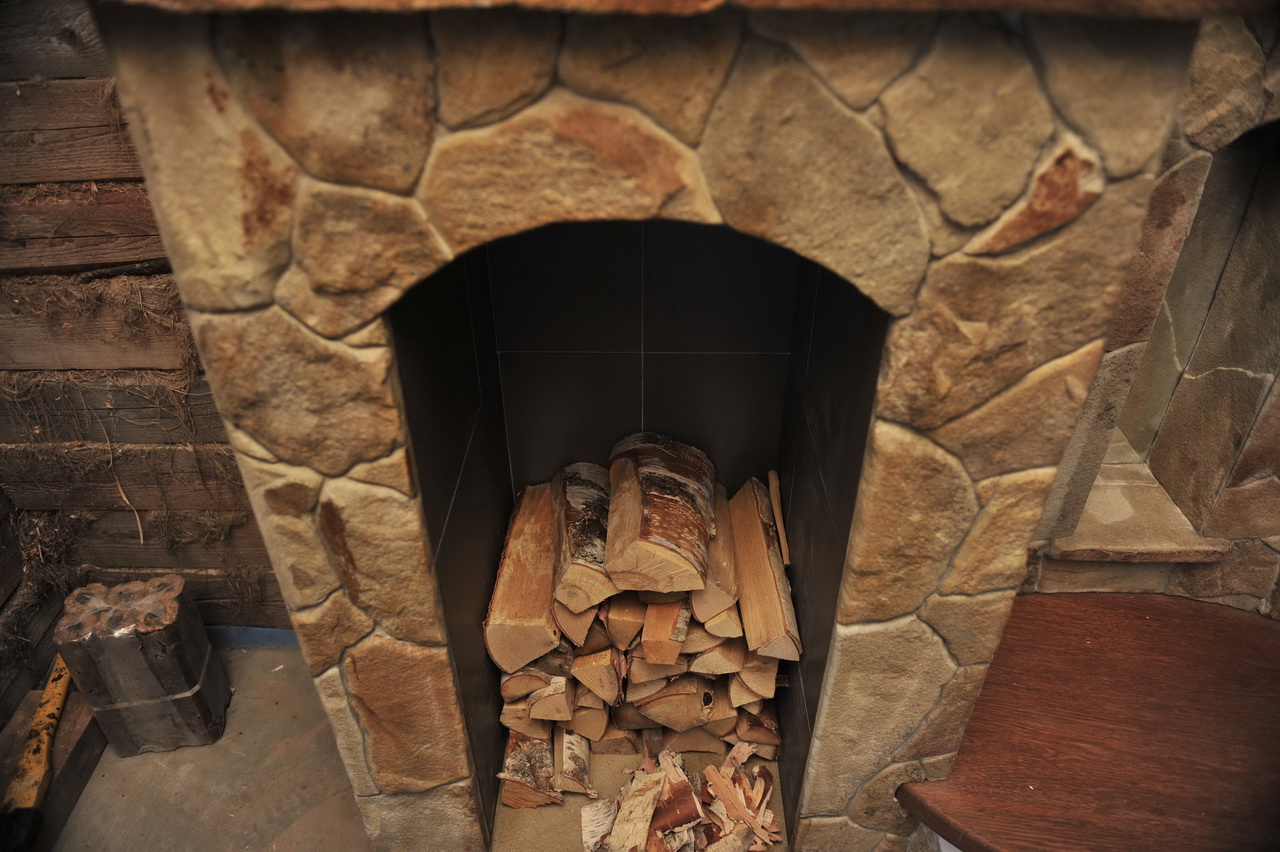 Камин в стиле "Кантри" сделан на основе каминной топки Schmid Pano 67 h .