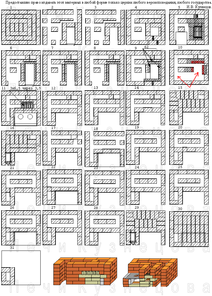 "умельцы"-это печники состоявшиеся ,поэтому необязательно воспользуются теми порядовками,многие из которых не лишены недостатков. Самый явный из них-отутствие футеровки топливника на многих конструкциях