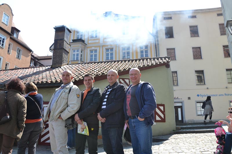 за спиной русских печников 500-летняя сосисочная Регенсбурга