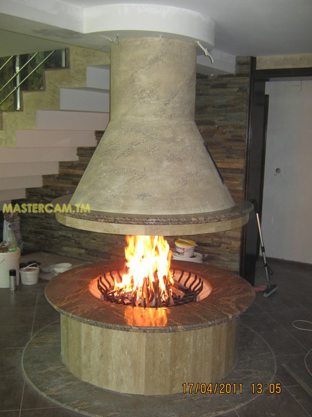 Особенно горжус с этим камином, я надеюсь, що понравится и вам.Размер очагом составляет 70 см в диаметре высота до перекритие подвесного димозборника 50 см .