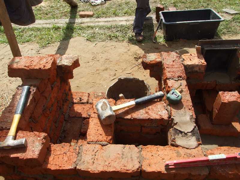 В оригинале был использован кирпич от старой печи, но предварительно отбракован и вычищен от остатков раствора.