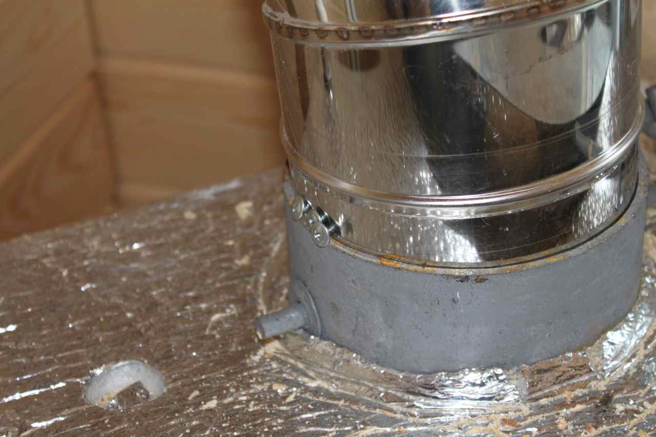 Дымоход в месте соединения с котлом будет сильно перегреваться. Соединять выход из котла с дымоходом из не утепленной нержавейки на саморезах - не самое лучше решение: саморезы быстро будут "съедены" огнем.