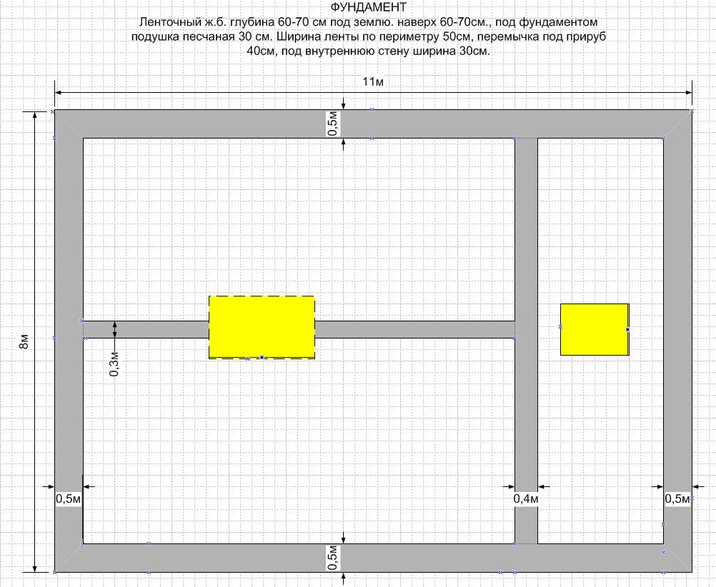 Фундамент под печь №1 (та что слева) пересекается с лентой фундамента ширина 30см. заглубленного на 70см. , высотой 50см. под которой находится утрамбованный песок. Почва суглинок.