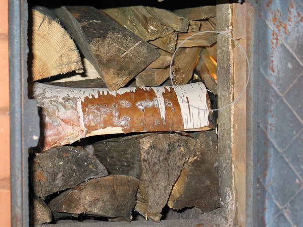 закладка дров в топку "колодой" и розжиг с угла сверху