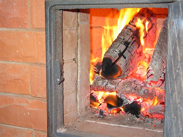 Сырую печь растопили в первый раз, фитиль находится в верхней части топки и обеспечивает постепенный прогрев трубы...