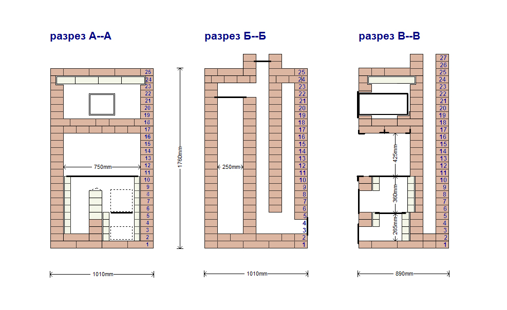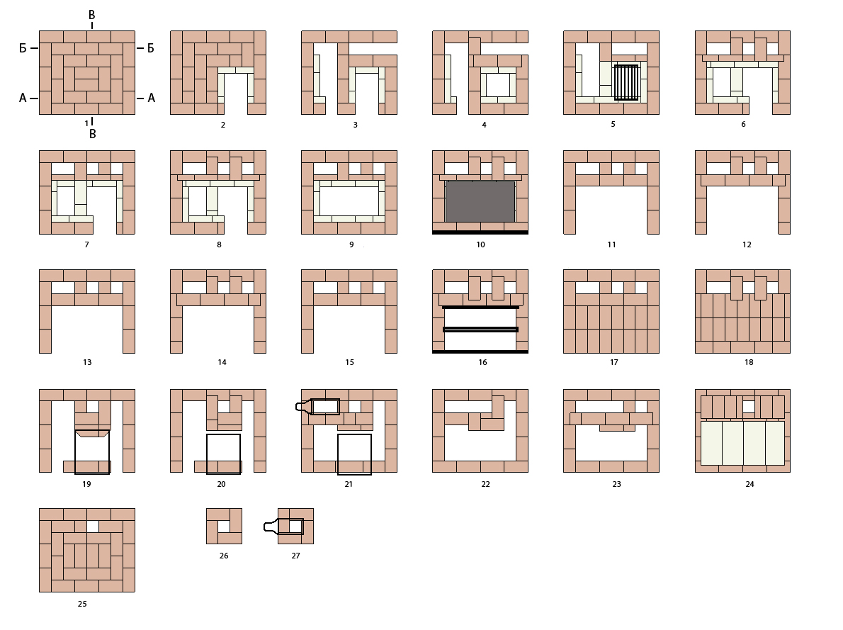 2. после перекрытия на 10 ряду топки чугунной плитой, кирпич 11 ряда должен краем лежать на плите? Судя по порядовке да, а по разрезу в-в нет.