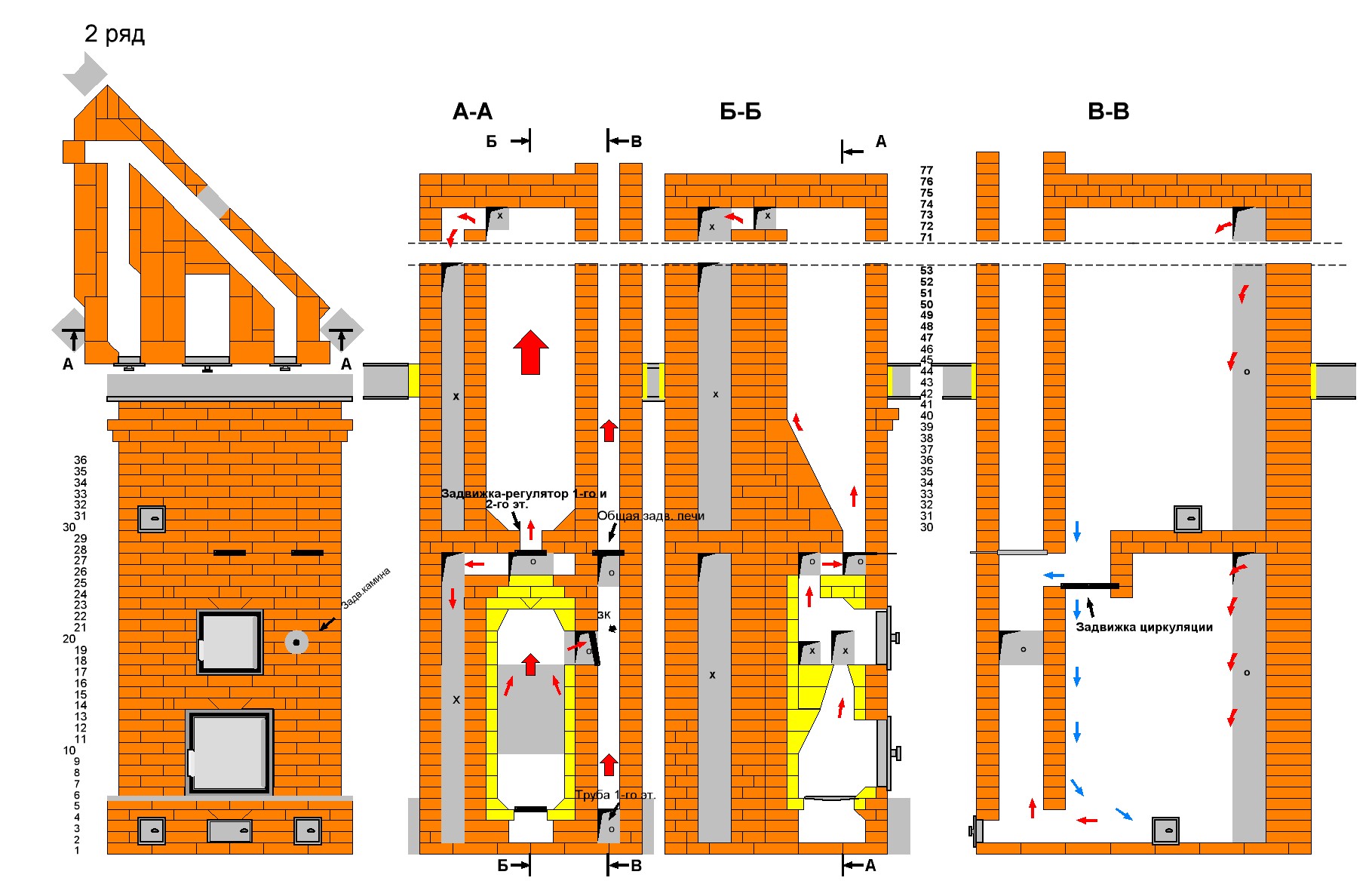 3. Разработчик предполагает, что печь нельзя будет протопить одной топкой и что ее неизбежно нужно будет топить два раза (не столько из-за малого топливника, сколько из-за свойств прогрева кирпича первого и второго этажа). Справедливо ли это?
