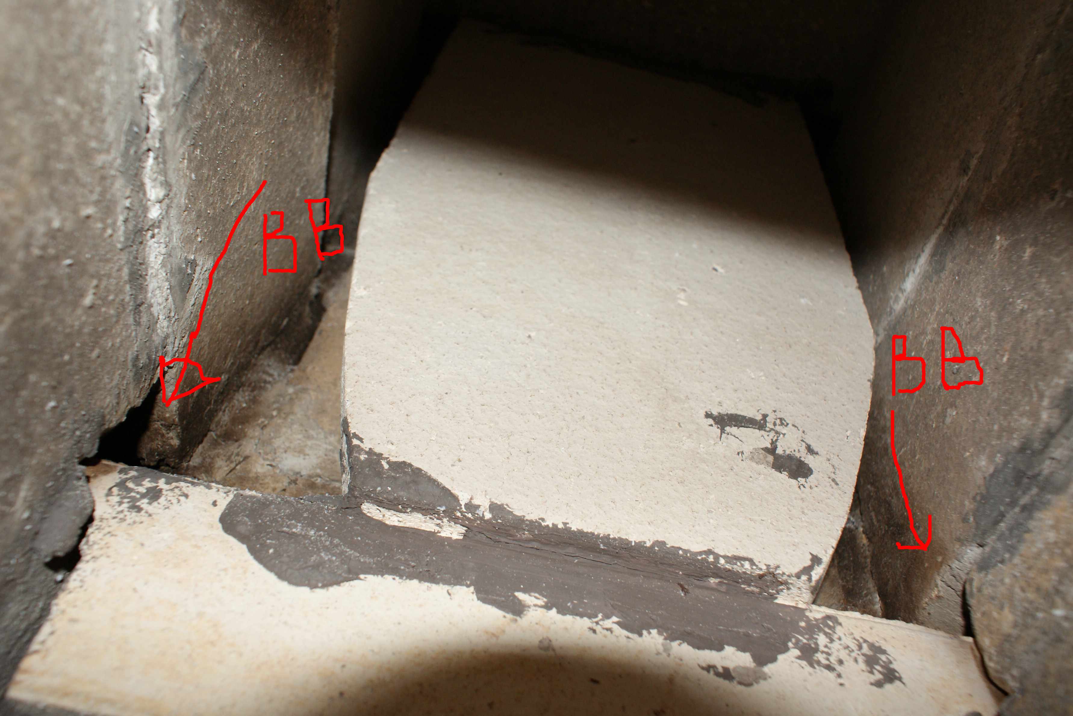 Шамот над топочной дверкой как и ожидалось при сильном нагреве расширяется и появляются горизонтальные трещинки в кладке которые исчезают при остывании.