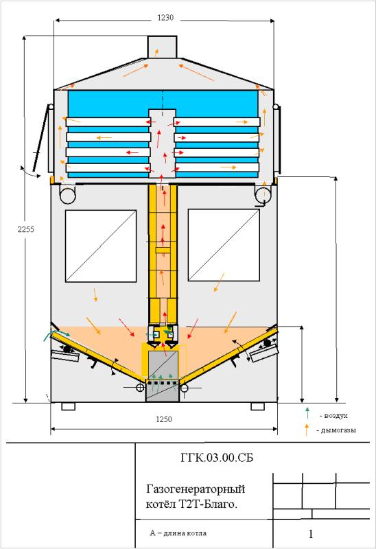 Если интересует, могу выложить рисунок. В водотрубной системе теплообменника чистить котёл проблематично. Вот поэтому мы перешли на жаротрубник с раскрывающимися дверцами по бокам. Для простоты можно даже одну дверцу сделать