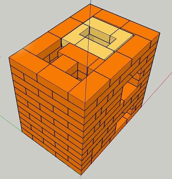 Также замечу, что в силу того, что шамотное ядро складывается на ребро. его ряды должны все время отставать от внешних, вплоть до того, что к последнему ряду это становится порядка 2-4 см... если так в силу каких-то причин не вышло, расстояние надо обеспечить подпилив последний стоящий на ребре ряд.