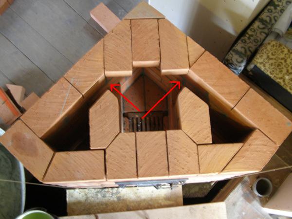 - В дальний угол топки поставил три огнеупорных кирпича, на ребро. Задняя часть печи заметно подостыла, нет перегрева. Это радует!
