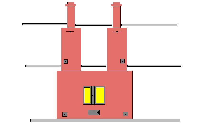 | Приходилось ли кому нибудь делать вот такую печь (рис 1)? Два колпака на втором этаже, Один на первом. Будут ли оба верхних колпака работать одновременно. Растояние между наружними стенками вторых колпаков 1м. |