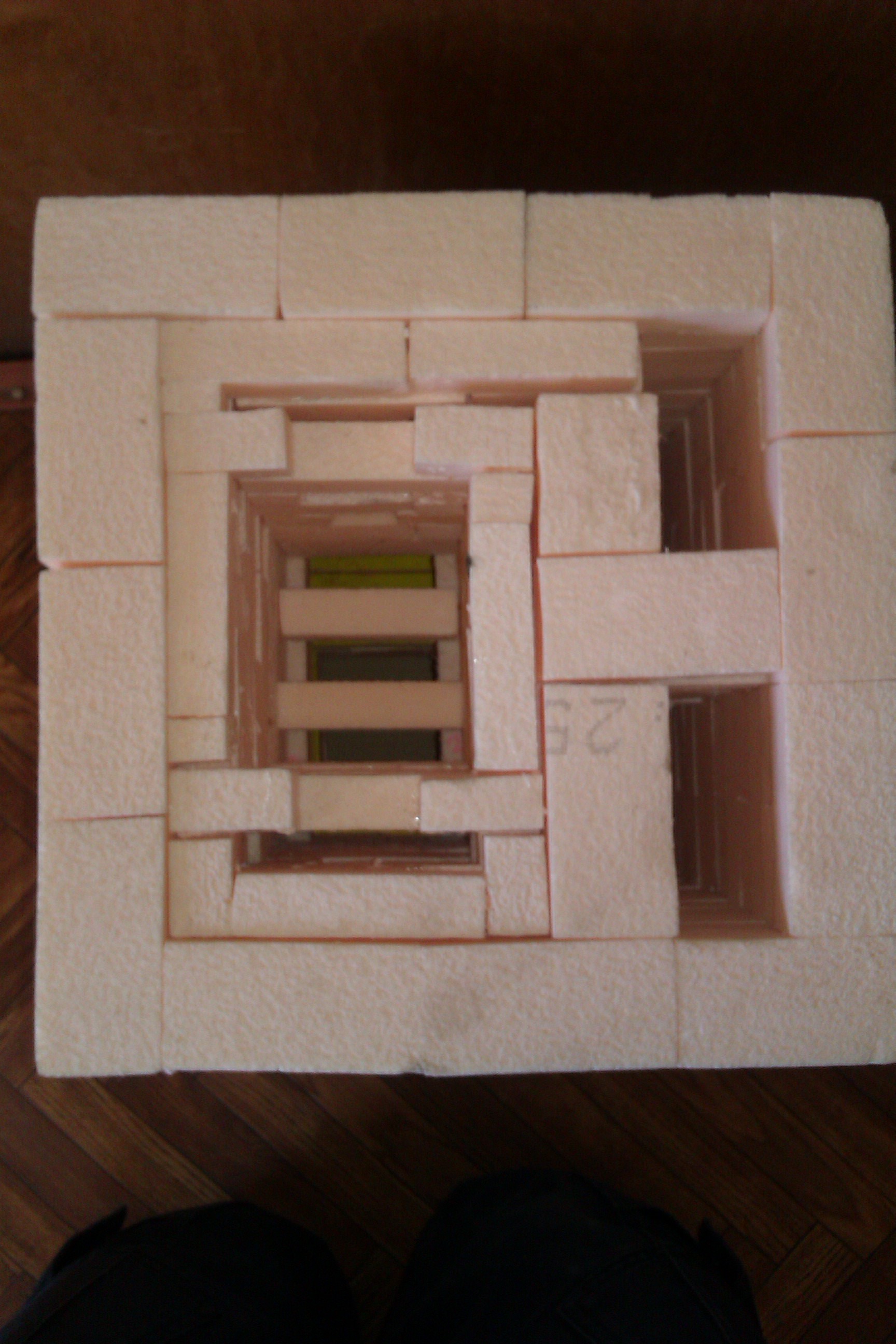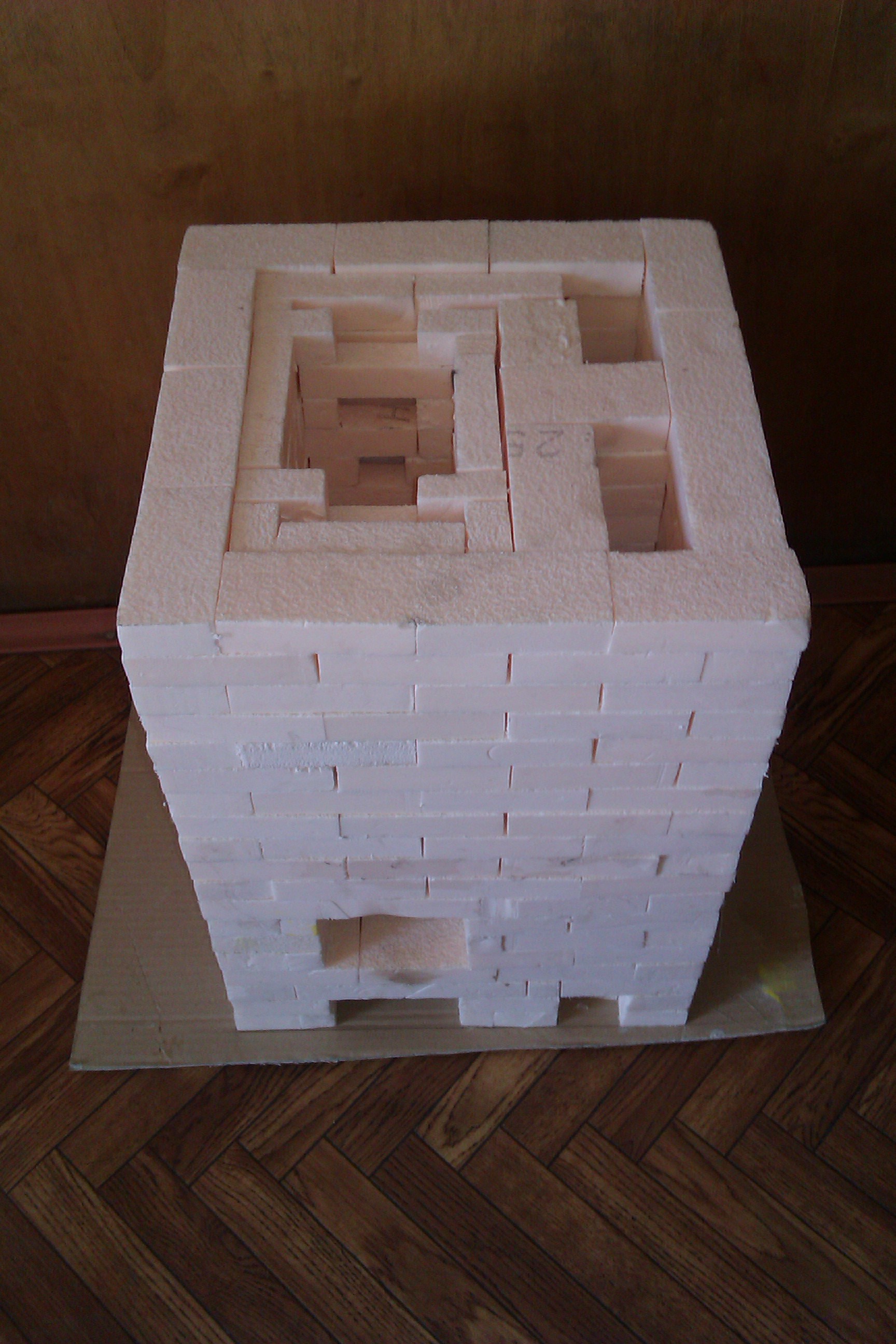 Чтоб не быть голословным и не задавать пустые вопросы я сделал макет такой печи. Конечно придется много резать, но вроде все получается! Единственное что меня мучает, так будет ли все это работать и не дымить.